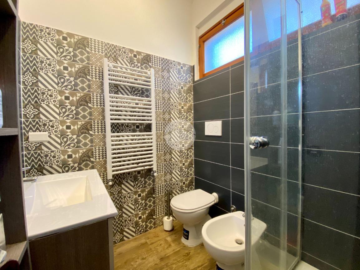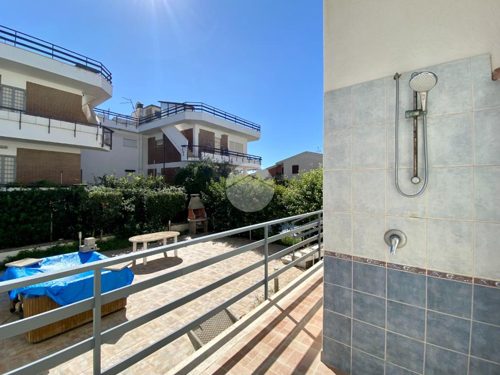 Sul retro si trova una seconda corte privata, anch'essa mattonata, dove è presente un ulteriore bagno finestrato, affiancato da una doccia esterna, soluzione pratica e funzionale soprattutto nei mesi estivi, dopo una giornata di mare.
