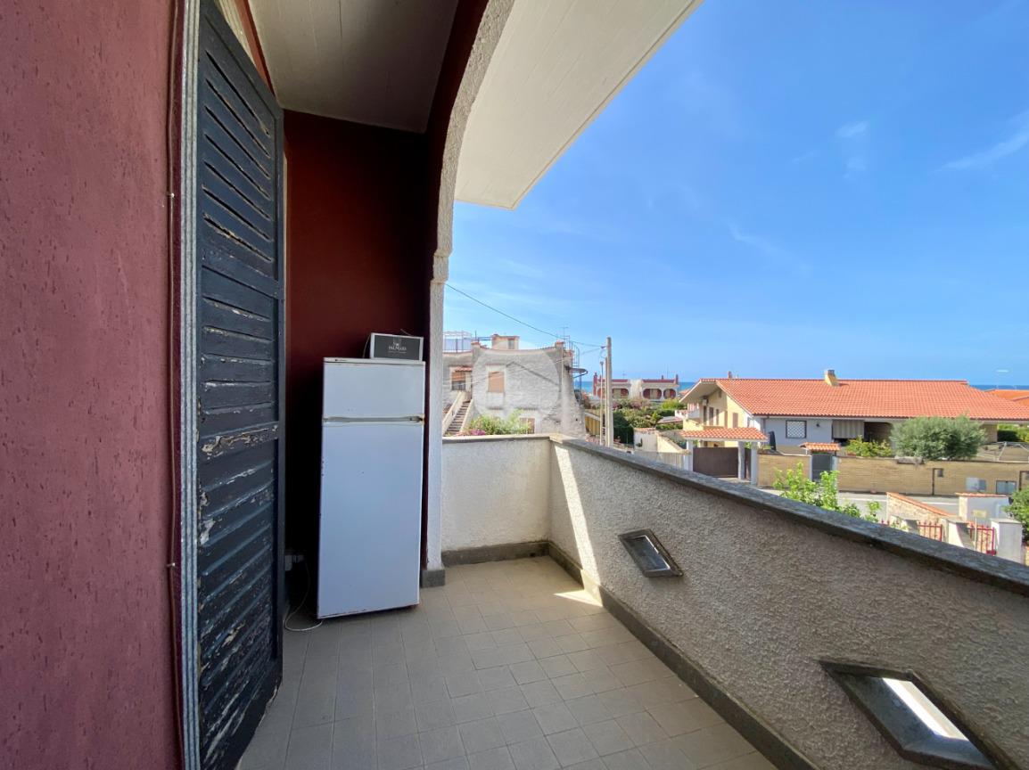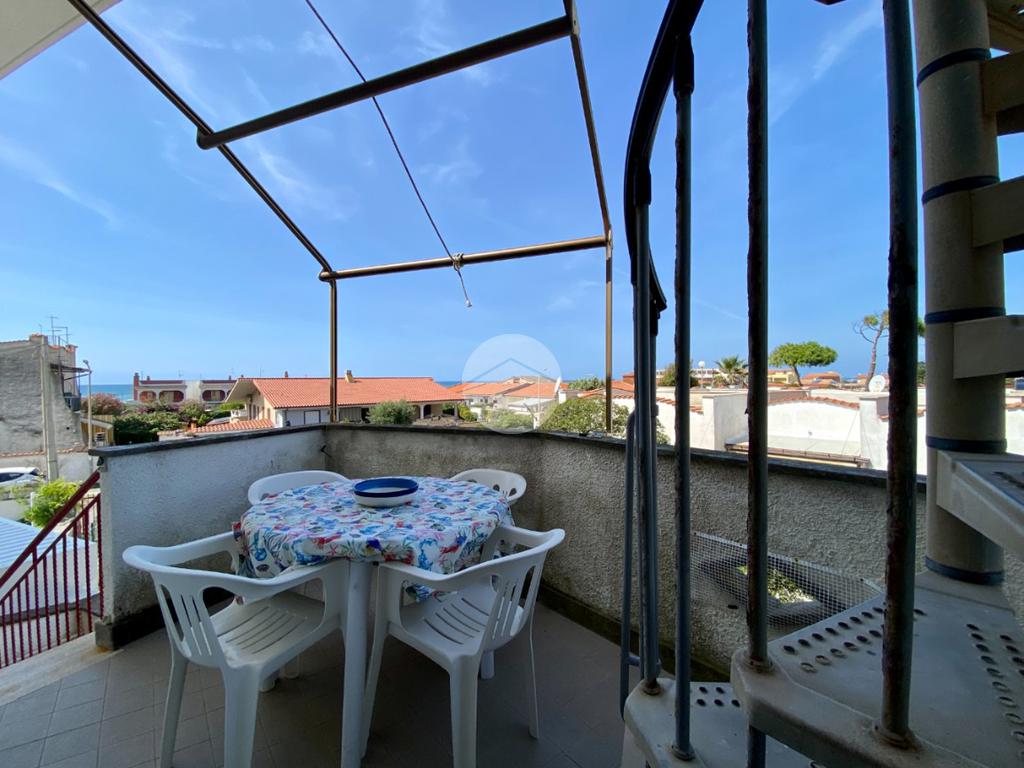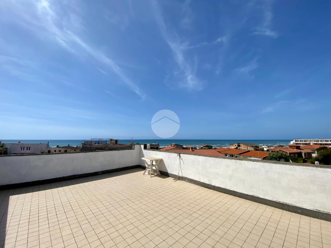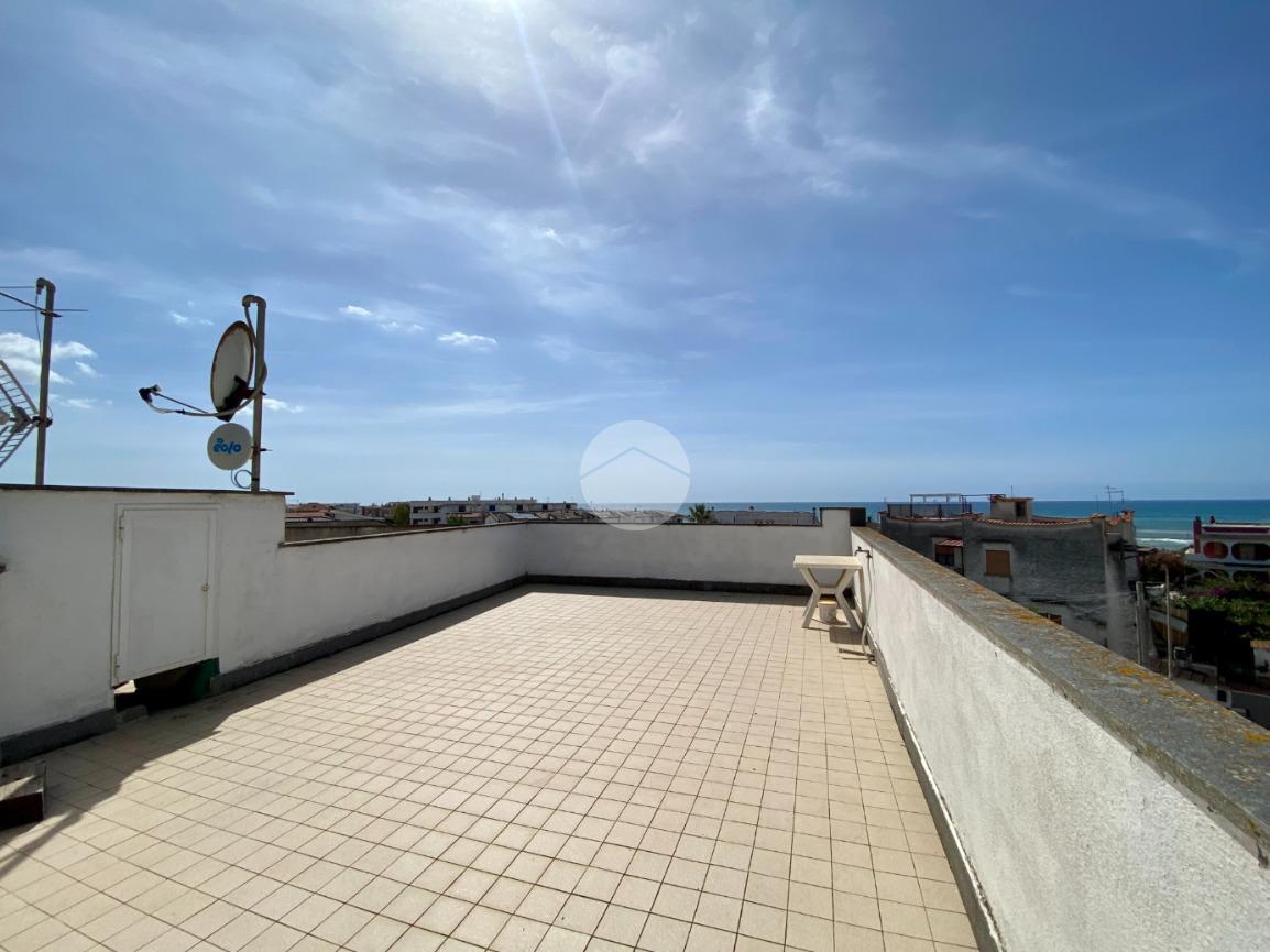 Dal balcone del soggiorno, una scala a chiocciola conduce al lastrico solare, un ampio spazio esterno con una splendida vista panoramica sul mare, perfetto per rilassarsi o trascorrere momenti in compagnia.