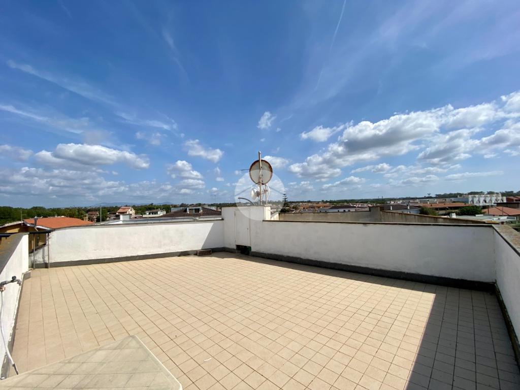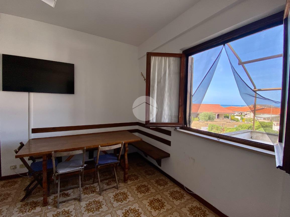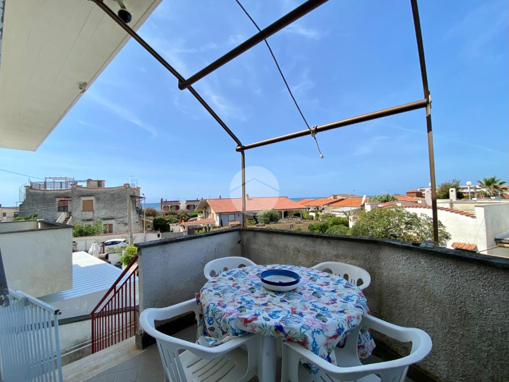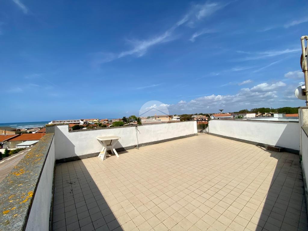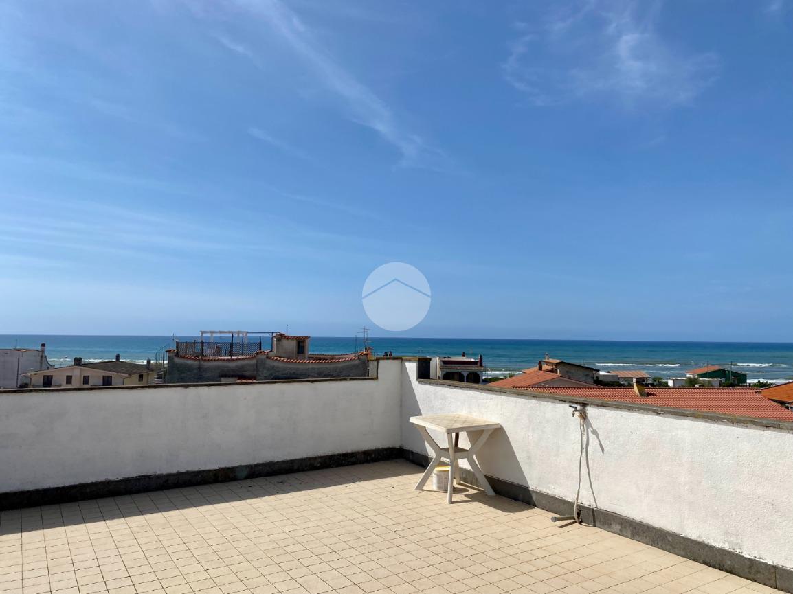 Dal balcone del soggiorno, una scala a chiocciola conduce al lastrico solare, un ampio spazio esterno con una splendida vista panoramica sul mare, perfetto per rilassarsi o trascorrere momenti in compagnia.