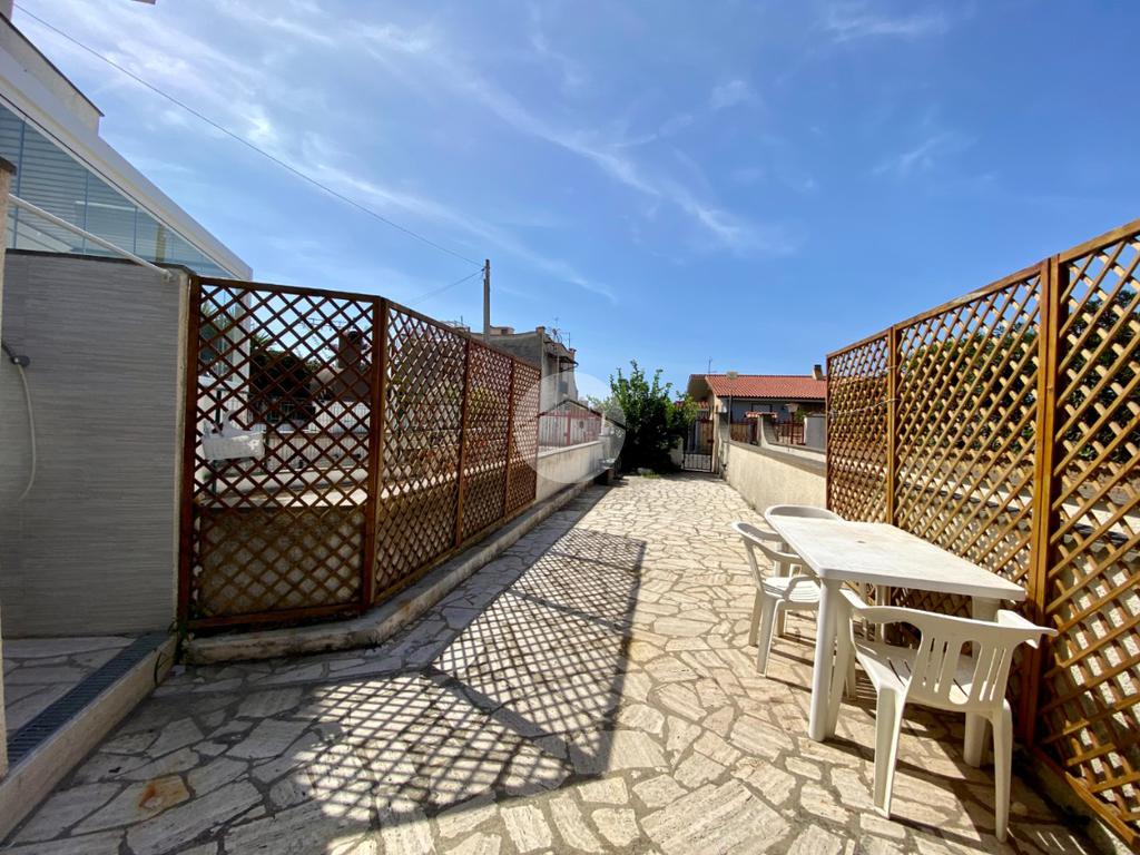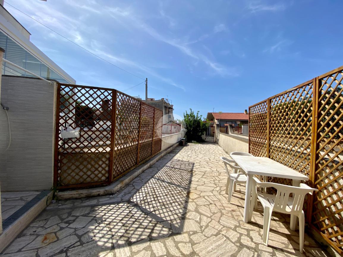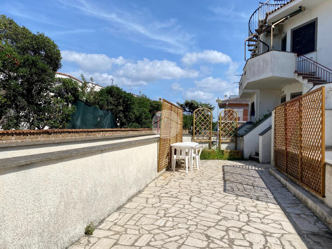 L'accesso all'abitazione è indipendente, attraverso una corte privata mattonata, perfetta per i momenti all'aperto e dotata di una comoda doccia esterna, ideale per rinfrescarsi dopo una giornata di mare. Nel sottoscala è presente anche un pratico ripostiglio, utile per riporre bici, attrezzatura da mare o altri oggetti.