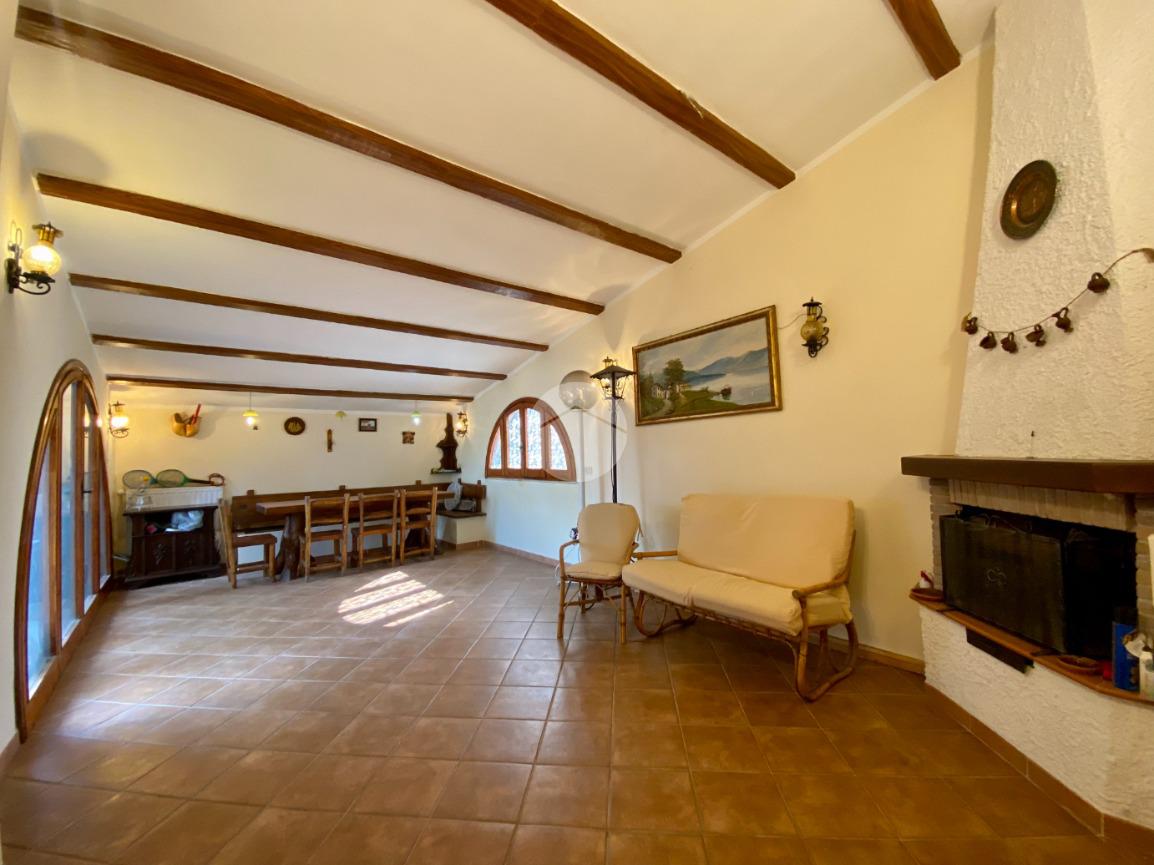 Al piano terra, entrando, ci accoglie una prima zona con camino, perfetta come ulteriore area living. Proseguendo troviamo un secondo soggiorno anch’esso con camino, cucinotto a vista e bagno con doccia privo di finestra.